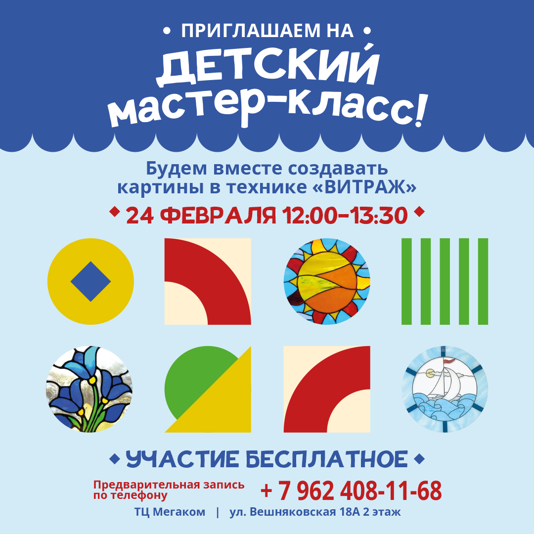 24 февраля в 12:00 ждем всех на мастер-класс по картинам в технике "Витраж"!